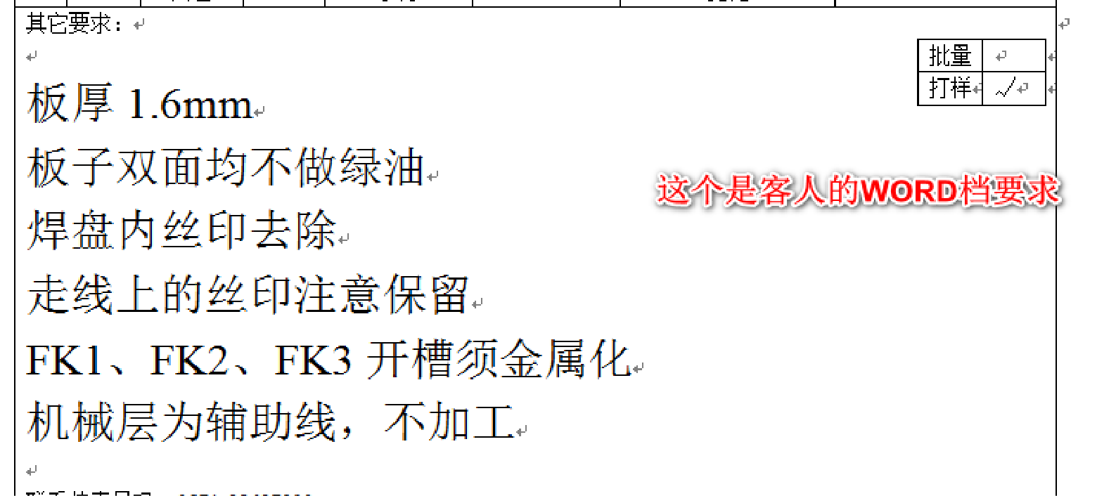 客户可提供出一张相对简单的制单要求(注:GERBER图像资料里的要求还是不予理会的),在不增加成本的基础上, 工程人员将按要求制作,如有问题再提出EQ(工程与客户 的沟通询问单) 示意图