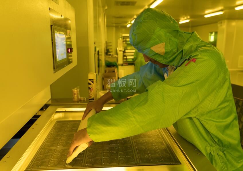 在紫外光照射下,吸收了光能量的光引发剂分解成游离基引发单体进行光聚合反应,形成不溶于稀碱的溶液的体型分子。曝光不足时,由于聚合不彻底,在显影过程中,胶膜溶胀变软,导致线条不清晰甚至膜层脱落,造成膜与铜结合不良;若曝光过度,会造成显影困难,也会在电镀过程中产生起翘剥离,形成渗镀。所以控制好曝光能量很重要。