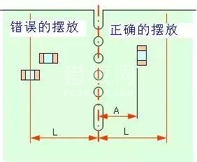 第一就是与切割方向平行(使器件的机械应力均匀,比如如果按照上图左边的方式来摆放,在拼板要拆分时贴片两个焊盘受力方向不同可能导致元元件与焊盘脱落)