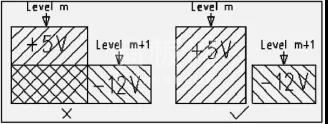 d)如若在相邻平面处理电源,要尽量避免铜皮或者走线之间平行处理,这主要是为了减少不同电源之间的干扰,特别是在一些电压相差很大的电源之间,电源平面的重叠问题一定要设法避免,难以避免时可考虑中间增加隔地层。