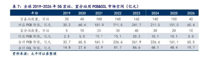关于5G宏基站、室分站的PCB市场空间测算,假设: