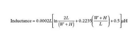 带状电感是另外一种需要考虑的寄生效应,它是由于印制线过长或缺乏接地平面引起的。式(2)示出了计算印制线电感(Inductance)的公式。参见图6。