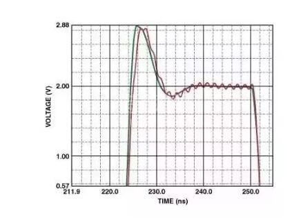 图7中的振荡示出了高速运算放大器同相输入端长度为2.54 cm的印制线的影响。其等效寄生电感为29 nH(10-9H),足以造成持续的低压振荡,会持续到整个瞬态响应周期。图7还示出了如何利用接地平面来减小寄生电感的影响。