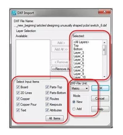图 5:PCB 设计工具(如这里介绍的 PADS)需要能够使用 DXF 格式控制所需的各种参数。