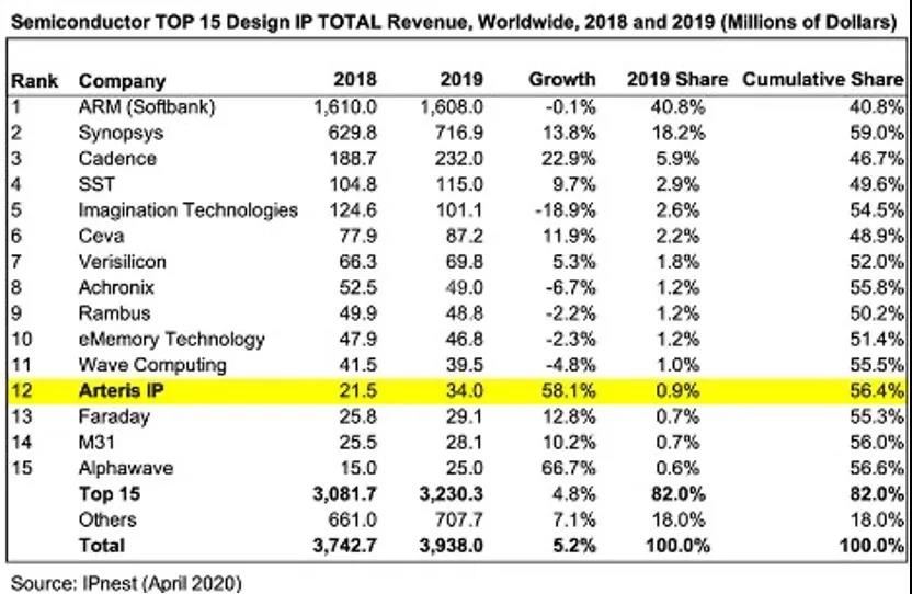 NoC互联IP厂商Arteris IP跻身第12位
