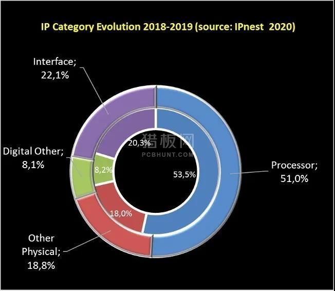 根据IPnest的统计,2018到2019年,处理器IP的市场份额从53.5%下降到51%,而接口类IP的市场份额则从20.3%上升到22.1%。从增长和市场份额来看,接口IP市场是最大的赢家,2019年的份额为8.7亿美元。而在2009年,接口IP类别仅占了2.2亿美元,在10年里翻了4倍。