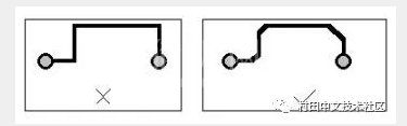 为降低EMI,应避免走线、过孔及其它元器件形成90°角,因为直角会产生辐射。在该角处电容会增加,特性阻抗也会发生变化,导致反射,继而引起EMI。要避免90°角,走线应至少以两个45°角布线到拐角处。