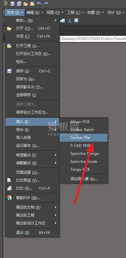 1.首先打开PCB,并且在文件-导入-Gerber fil:
