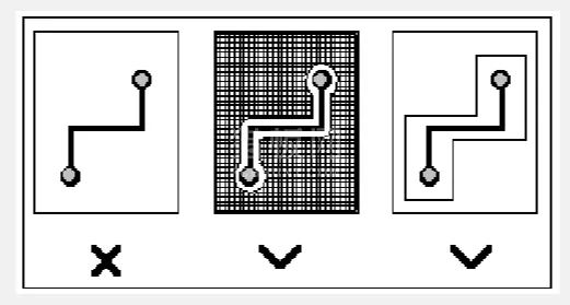PCB设计中应避免产生锐角和直角,产生不必要的辐射,同时工艺性能也不好。