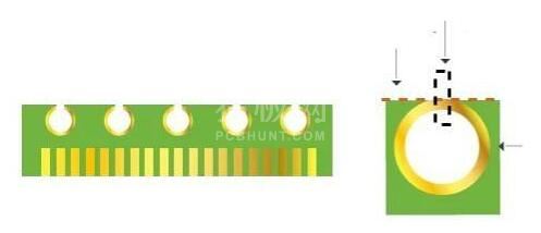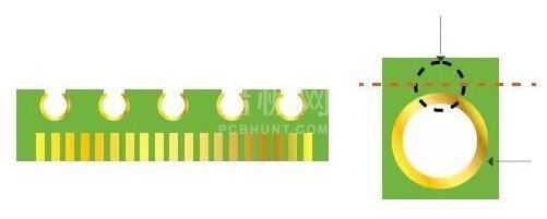 通过对于PCB电路板边缘的孔或通孔做电镀石墨化。切割板边以形成一系列半孔。这些半孔就是我们所说的邮票孔焊盘。