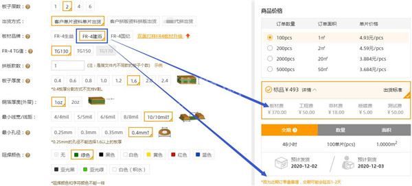 猎板批量订单板费与交期