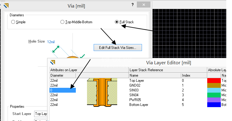 如果是行单独对某个层进行削盘 可以选择FUll stack 的选项,想对应的层设置为0mil即可