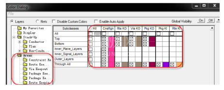我们在进行pcb设计的时候,需要根据不同的PCB板结构以及一些电子产品的需求来进行各种不同区域的设计,包括允许布局区域设计、禁止布局区域设计。允许布线区域设计等等。在allegro设计中,设置这些就在Areas,如图5-60所示。