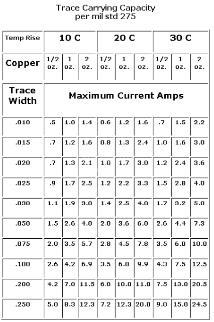 线宽的单位是:Inch 数据来源:MIL-STD-275 Printed Wiring for Electronic Equipment