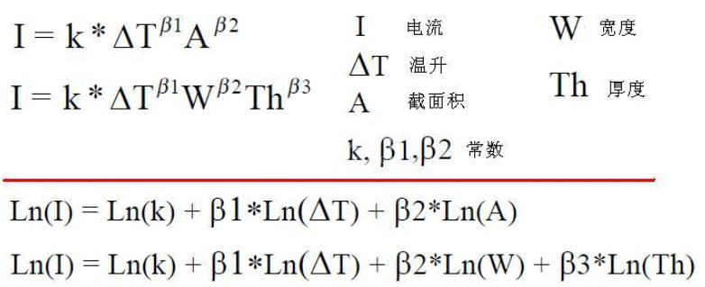 我们直观的认识认为发热一般从R*I^2,R是和导线的截面积(宽度和厚度的乘积),因此我们可以发现这是一个非线性函数,并且由于导线在发热的同时有多种散热方式,使得这个模型变得比较复杂,因此我们初步给定一个模型然后使用数据进行拟合