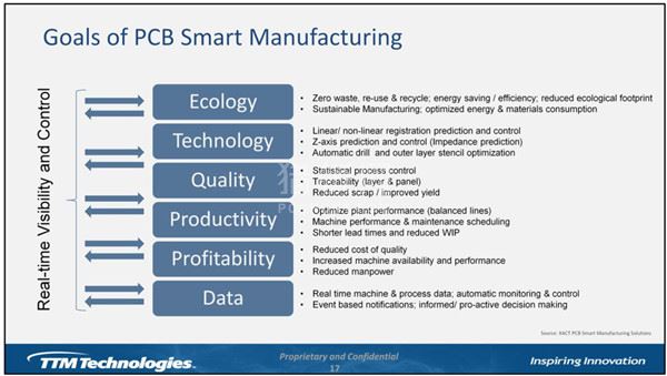 智能制造、工业4.0是当今的热门话题,类似迅达科技这样的领先厂商,自然需要思考,如何将PCB制造业带入到流程更智能、质量可追溯、生产效率高的智能制造时代。艾德曼表示,PCB智能工厂并只是IT策略,也不只是自动化制造,PCB智能工厂要能够实现流程控制实时可见、生产因素完全可控,能够满足PCB厂商及客户对环境、技术、质量、产能、成本收益,以及数据追踪的所有需求。
