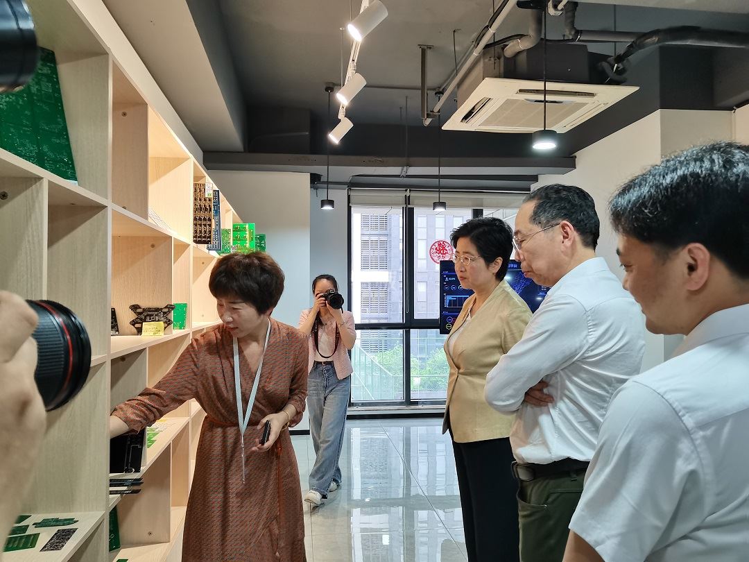 上午九时五十五分,猎板总经理刘从娟携猎板部分员工在门口等待,对将要到来的各位领导表示十分重视。五十七分,区委书记陈瑾一行到达猎板并对我司员工表示亲切的问候。在询问公司概况时,总经理刘从娟回道:“我们是一家专注PCB快速打样,以系统驱动、用数据管理,从而实现微小订单也能快速生产的智慧工厂,目前年产能25万平方米,核心设备数量180余台,员工240余人,多层线路板工程师70余人。”陈瑾等领导对此表示认可。