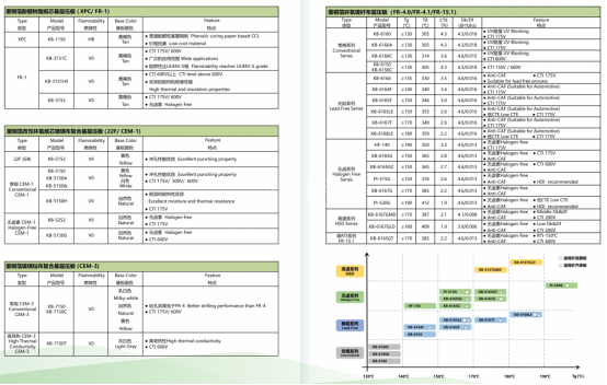 另外说明的是,与FR-1、FR-2、FR-4不同,FR-3是介于纸基CCI与玻璃纤维布基CCL之间的一种类型,由纸基浸渍环氧树脂与铜箔复合而成,而CEM-1覆铜板在FR-3基础上改进而来,这也是为什么CEM是复合基类型的原因。