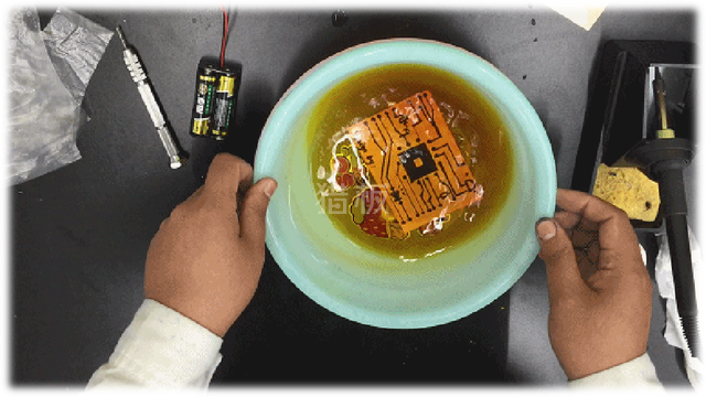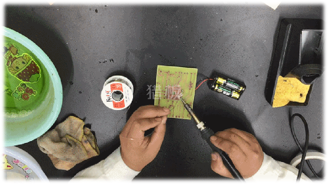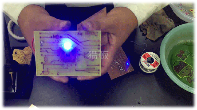 在实验室我们一般分为以下几步:PCB布局-图纸打印粘贴-粘贴-灯光照射-等待15或30分钟-配制溶液-腐蚀并清洗-打孔-焊接。